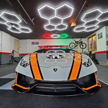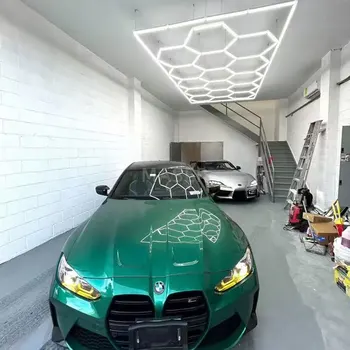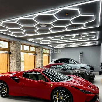Garage-specific Honeycomb Lights with Remote Dimming and Color Adjustment Les Exagone LED Grid Ceiling Lights for Car Repair