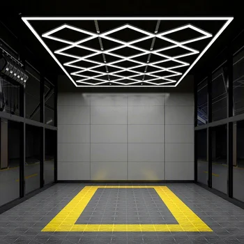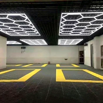 Hexagon LED Garage Lights Room Ceiling Lights for Car Detailing Shop Showroom Workshop 15 Grid Honeycomb Lights