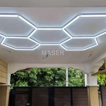 Hot Sale Detailing Light Design LED Workshop Light Hexagon Garage Light for Car Showroom Auto Workshop 5 Grid System